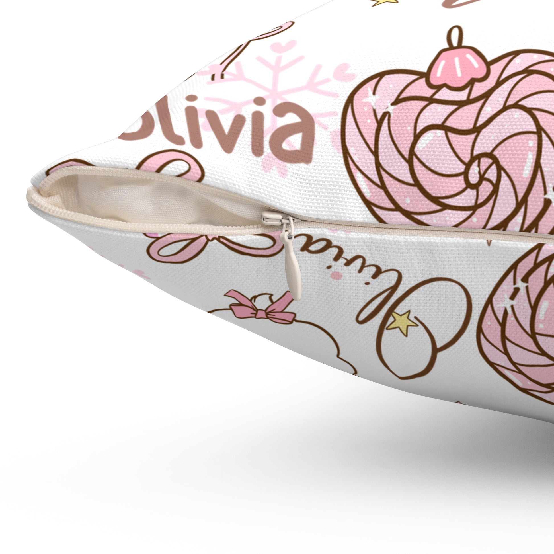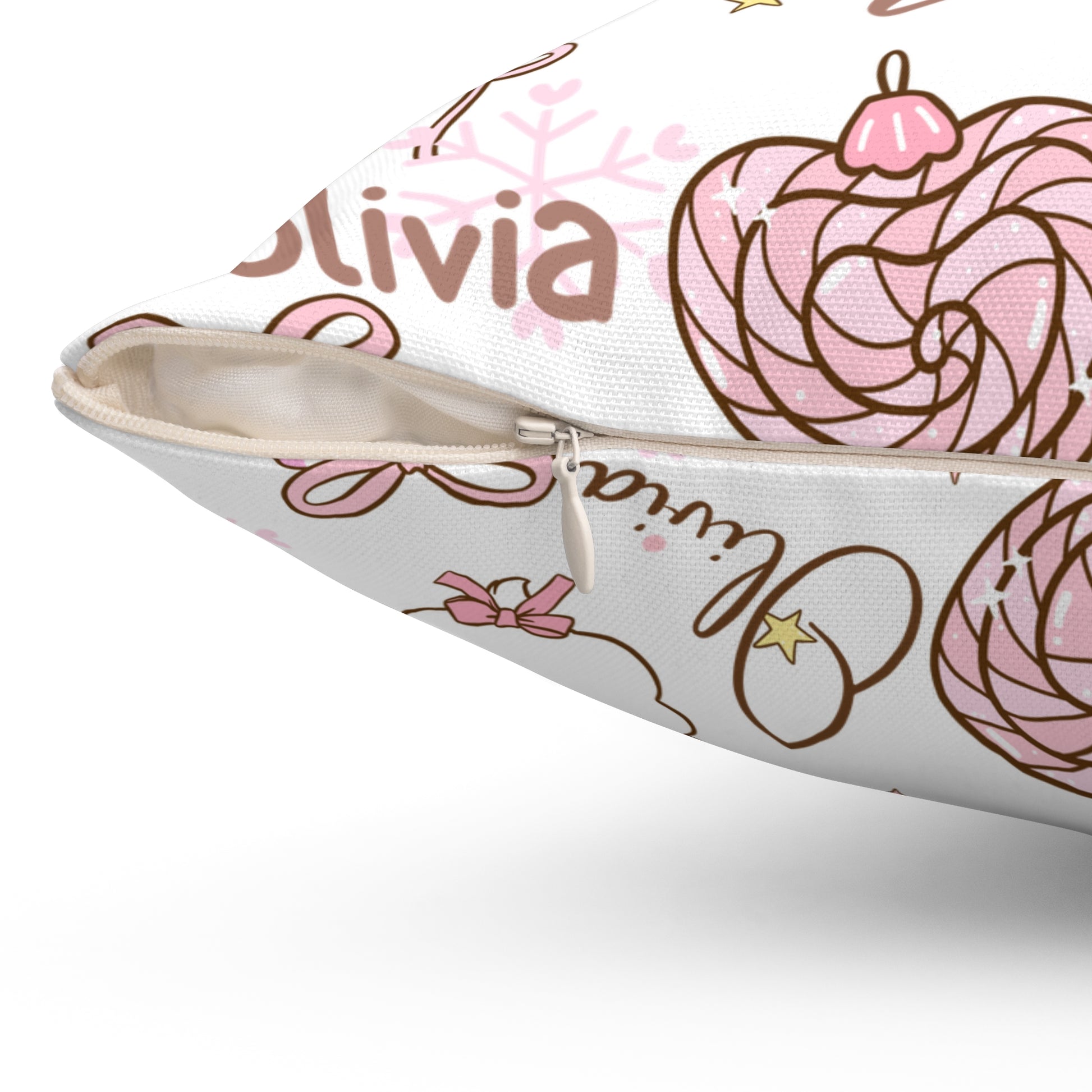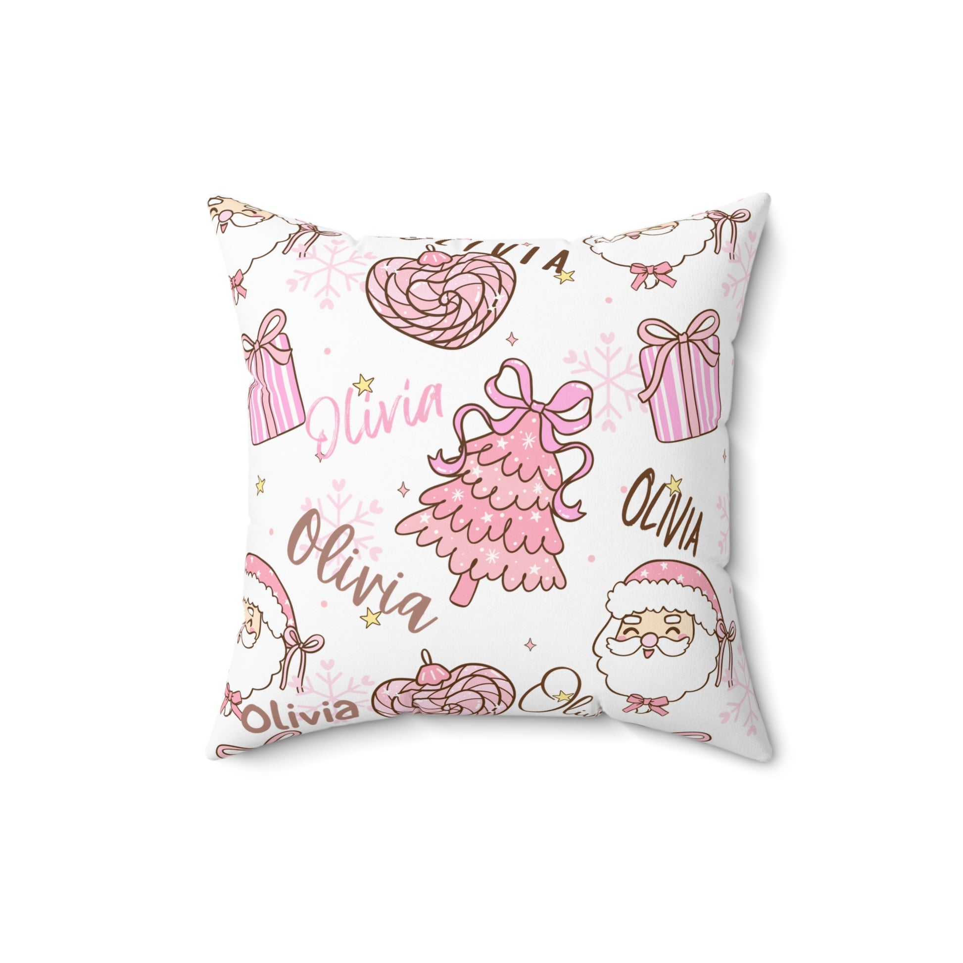 Christmas Pink Personalized Spun Polyester Pillow, Holiday Decor, Custom Name Cushion, Festive Square Throw Pillow, Home Accent