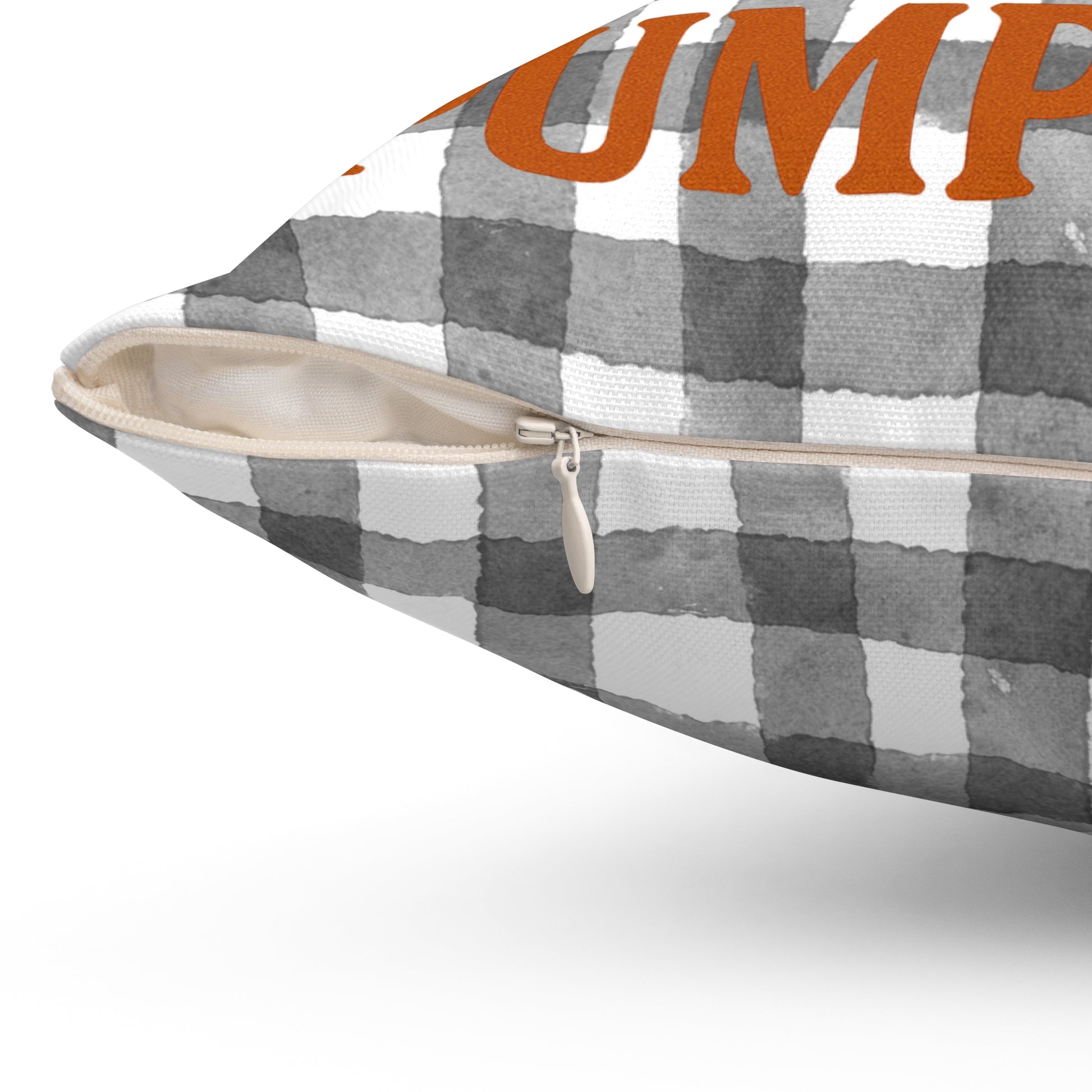 Farm Fresh Pumpkins Square Pillow, Fall Decor Pillow, Grey Plaid Pillow, Autumn Harvest Pillow, Halloween Pillow, Thanksgiving Pillow