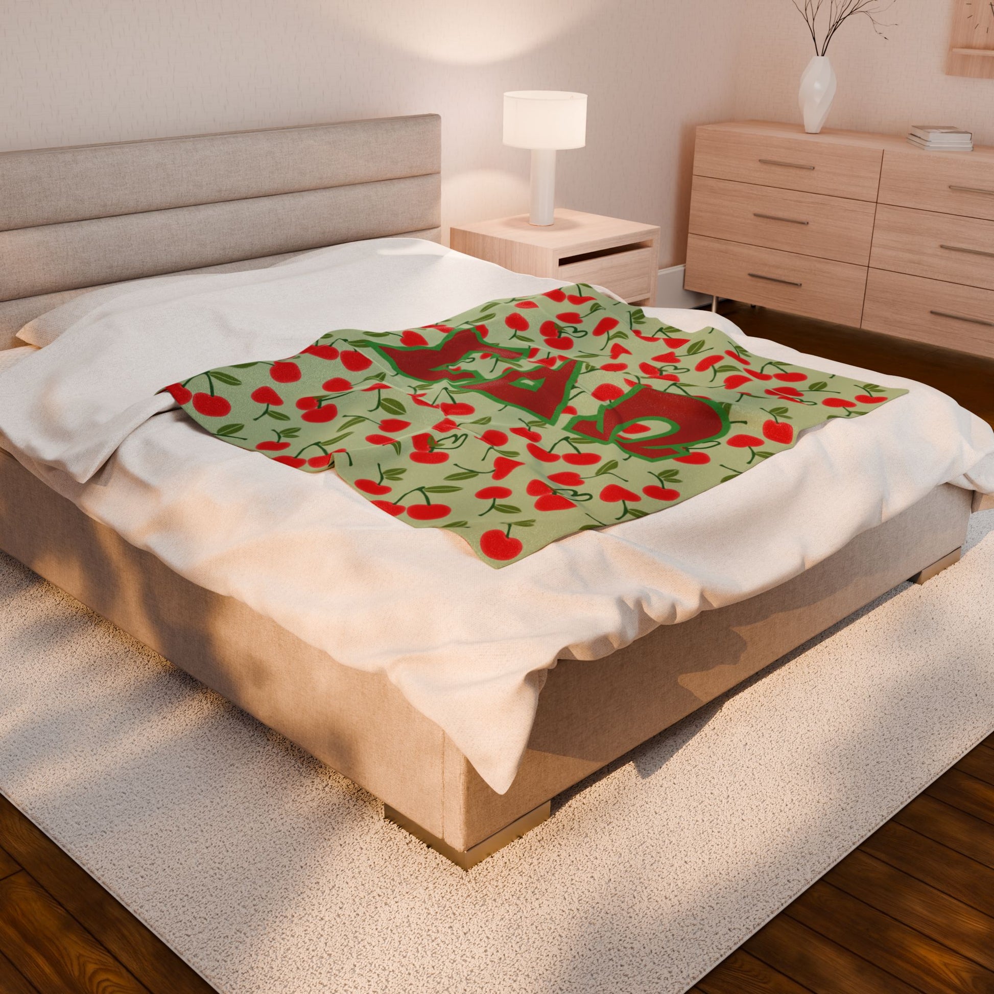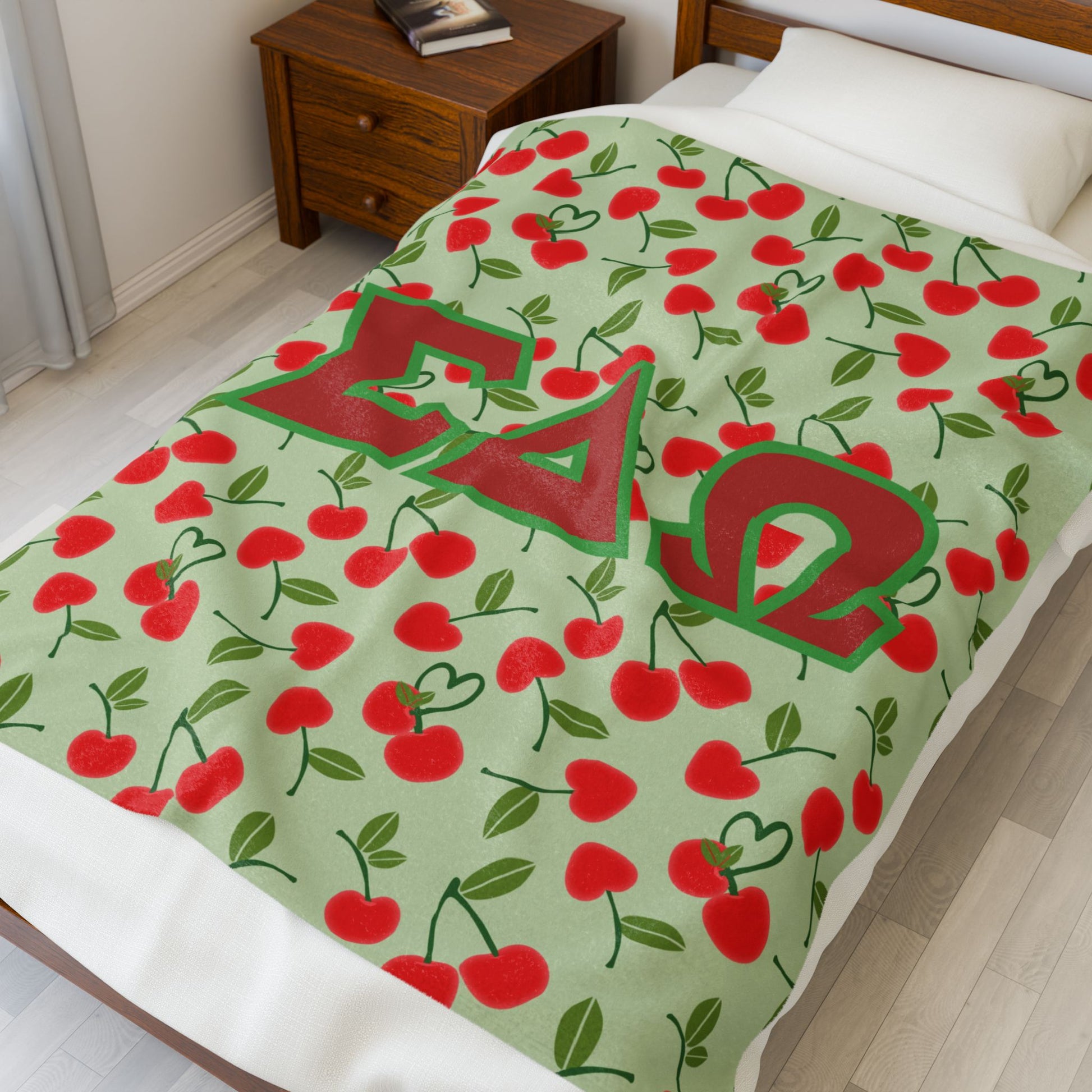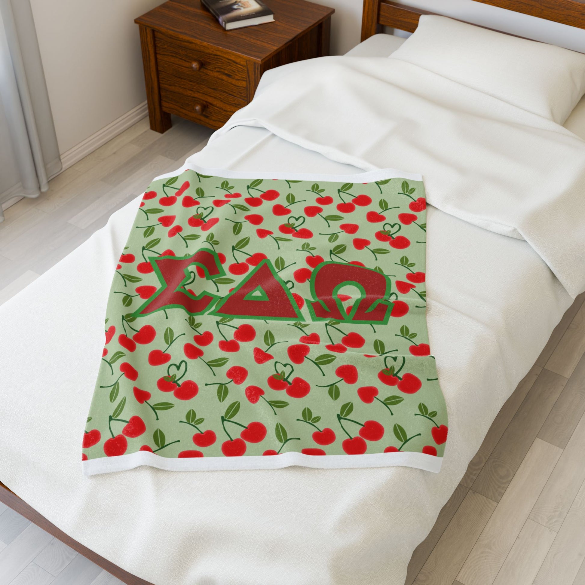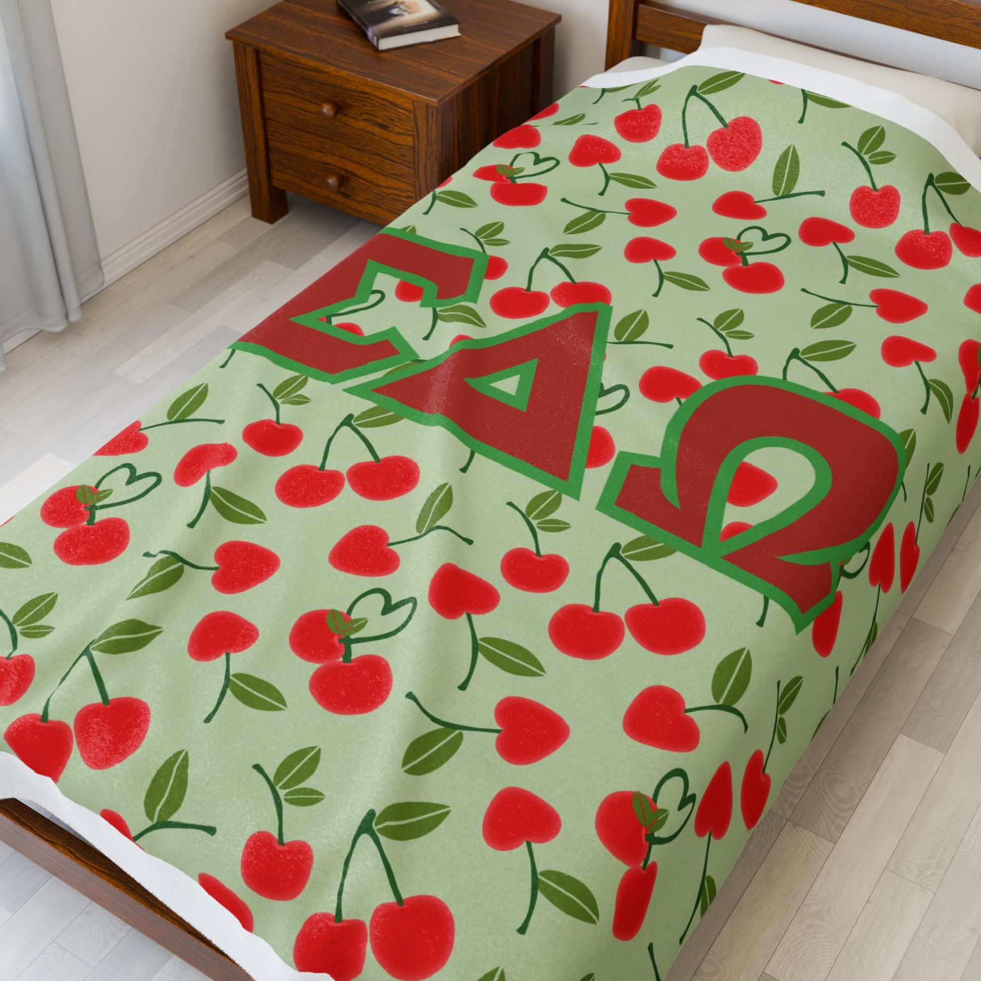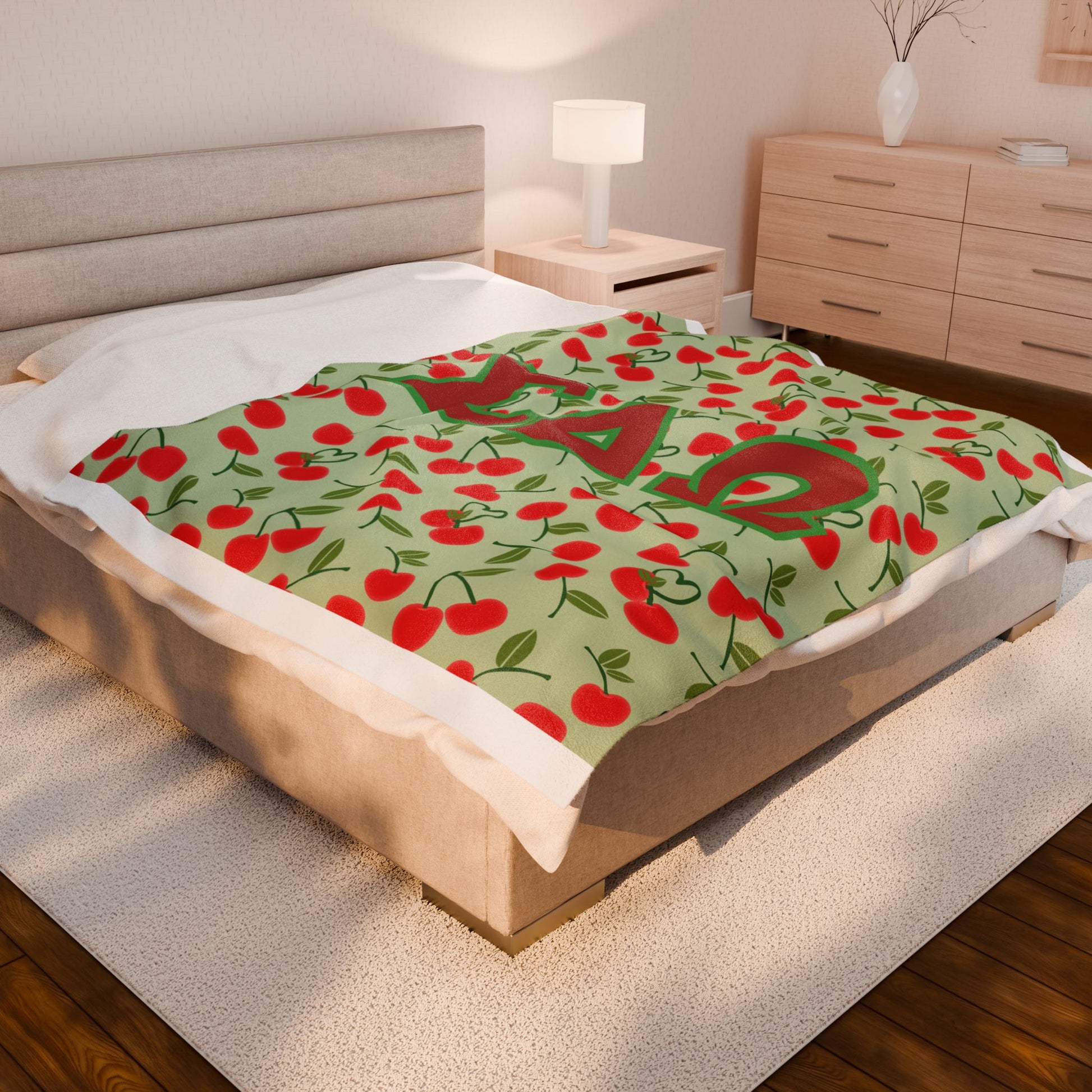 Personalized Sorority Cherry with big letters. Throw, Graduation Gift, Custom College Dorm Decor, Big Little Reveal, sorority gift