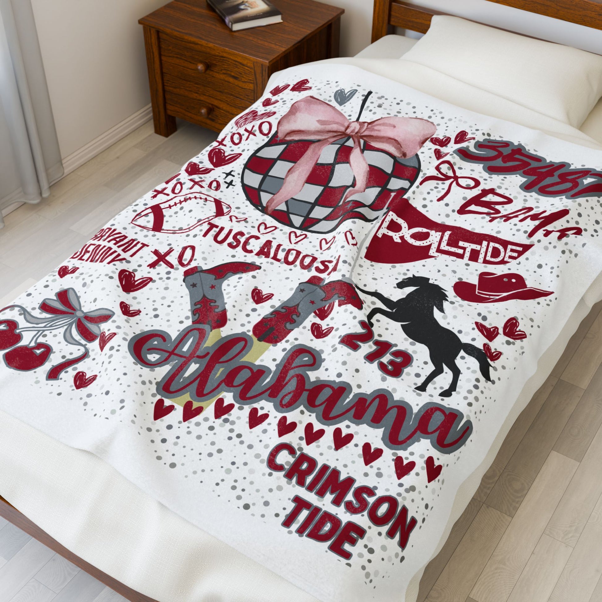 Plush Blanket for Alabama Pride College Fans, Personalized Fleece Throw Gift, University Team Spirit Dorm Bedding, Bama Home Decor,