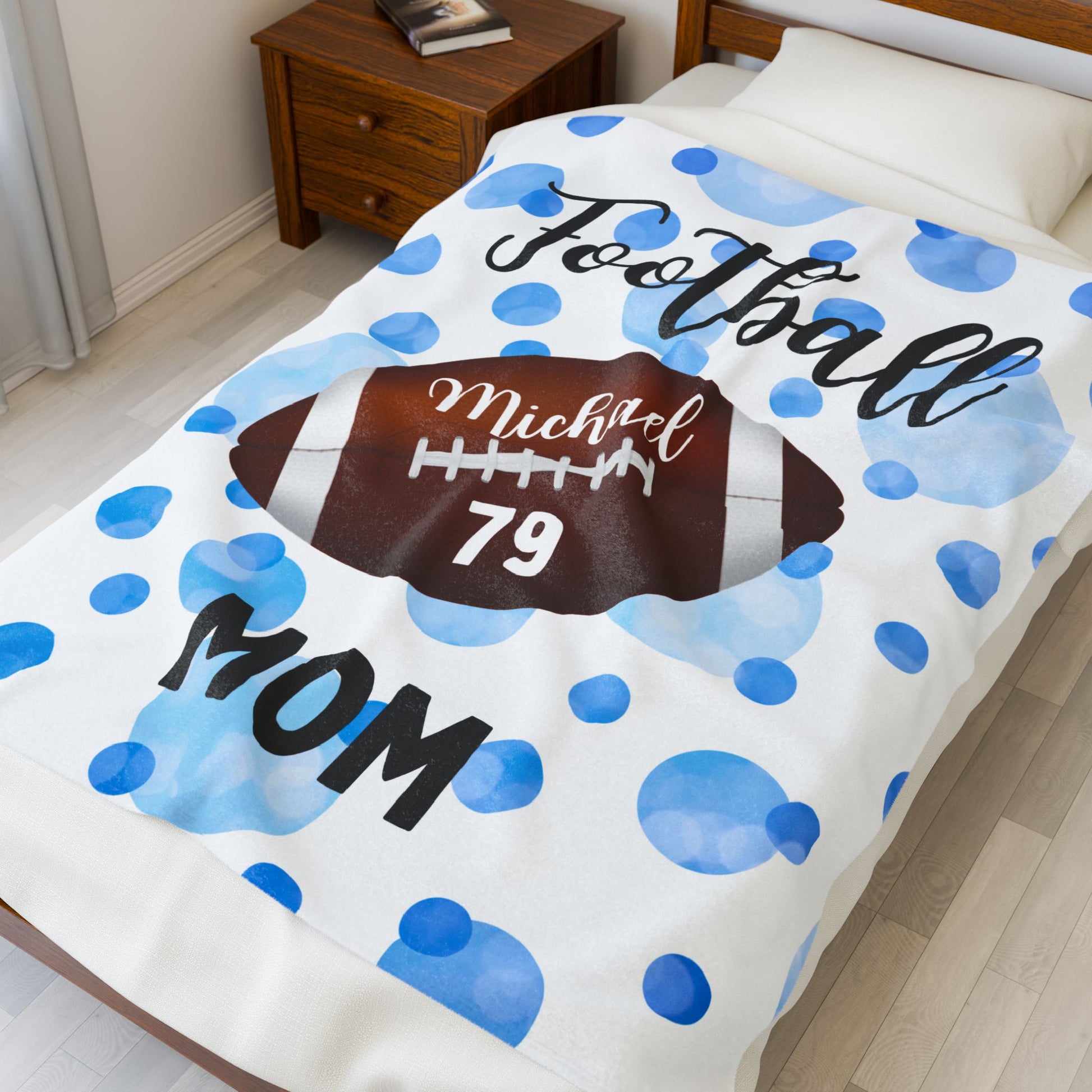 Plush Blanket, Trendy Football Mom Personalized Sports Team Fan Gift, Cozy Throw, Custom Name Soft Fleece Bedding, Stadium Mom Present,