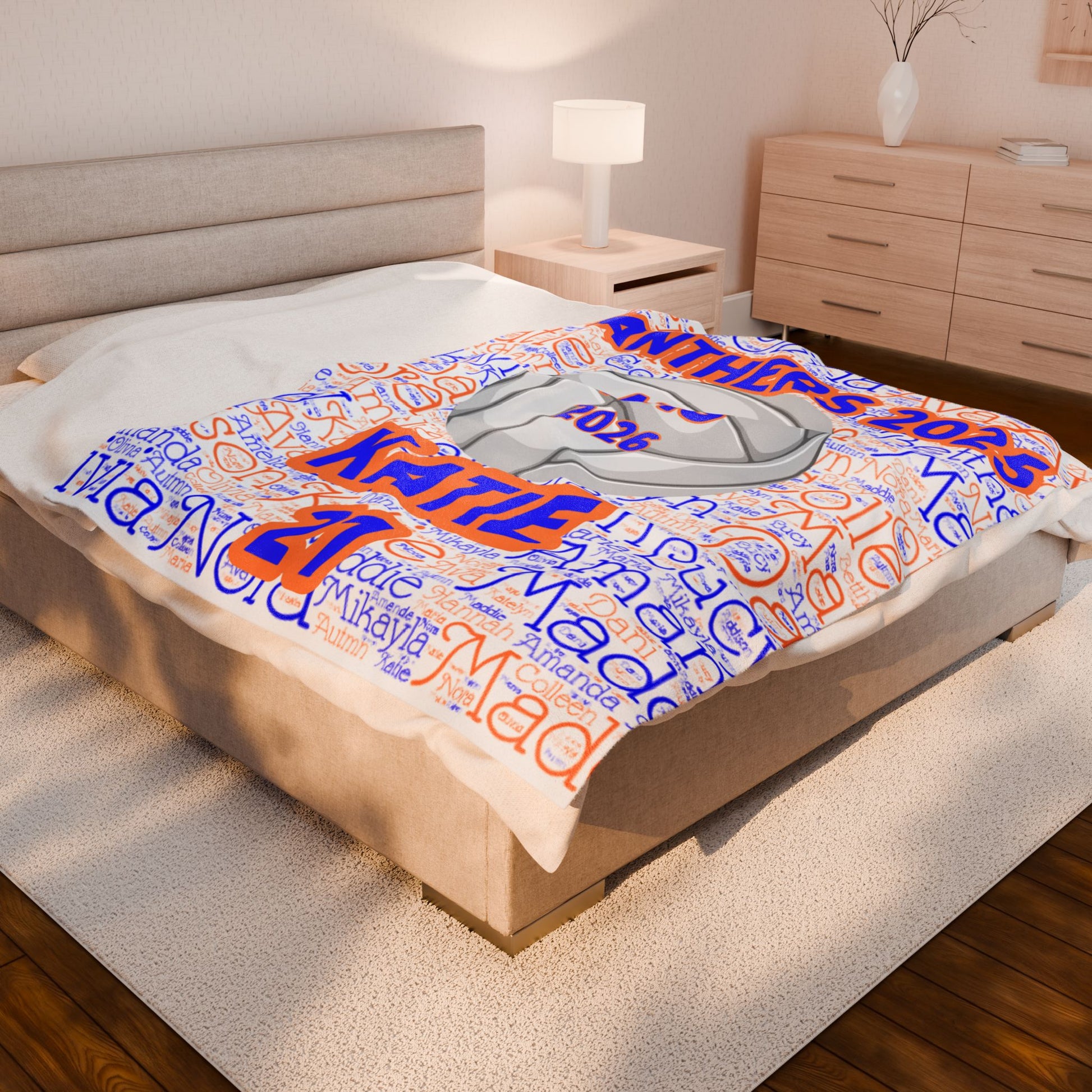 Senior Night Plush Blanket - Senior Night Gift with Roster Names, School Ball Design, Customized Sports Team Blanket,