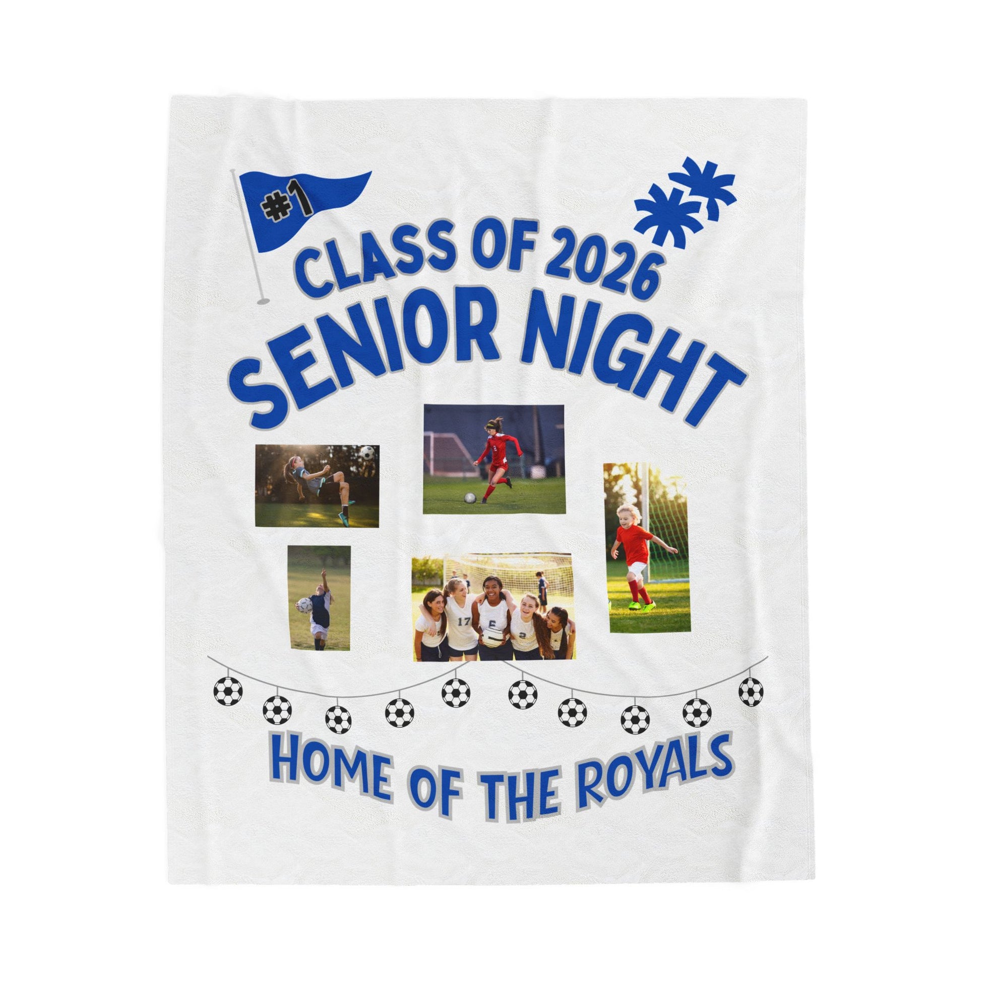 Senior Night plush blanket with memorable photos of playing sports through the years, great for a senior night team gift that is personalized. This cozy and soft blanket creates a nostalgic and sentimental atmosphere, perfect for athletes looking to commemorate their high school sports career. Ideal for senior night celebrations, sports banquets, and team gift exchanges.